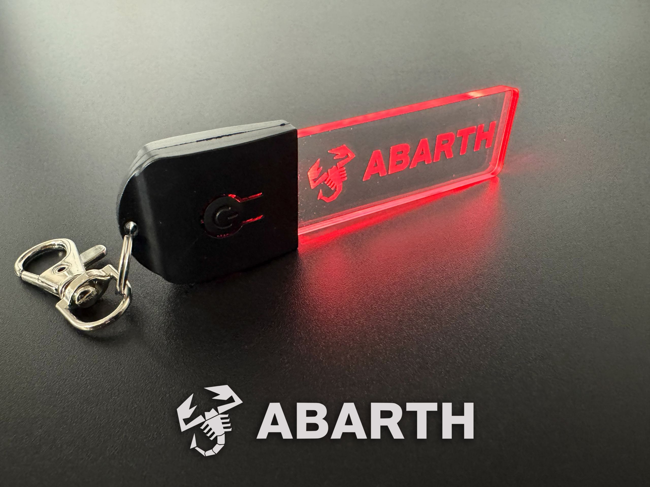 Introducing our exclusive 7-colour LED Abarth Logo Keychains! Designed with captivating colour-changing LED lights, these keychains are made from high-quality 4mm clear acrylic and feature polished edges that create a stunning 3D effect. They make the perfect gift for owners of the 595 and 695.