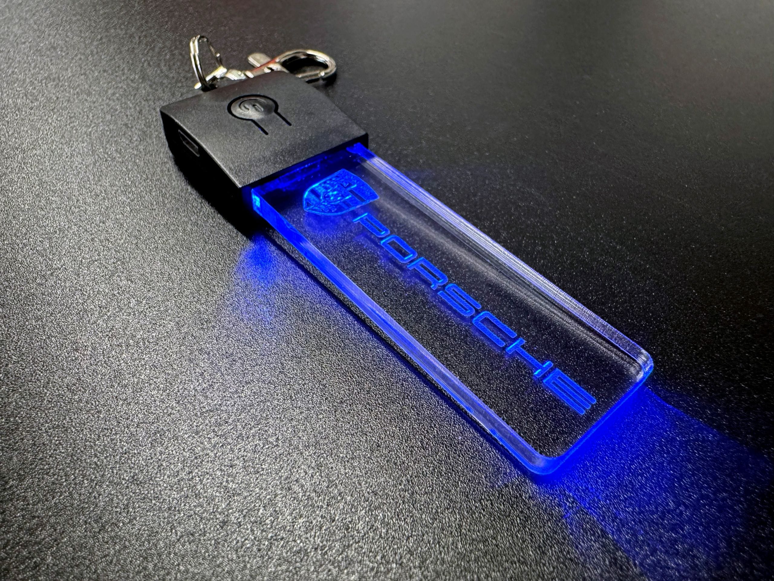 Introducing our exclusive 7-colour LED Porsche Logo Keychains! Designed with captivating colour-changing LED lights, these keychains are made from high-quality 4mm clear acrylic and feature polished edges that create a stunning 3D effect. They make the perfect gift for owners of the Porsche 911, 918, Targa, Boxter, 718, Caymen, Cayenne, Macan, Carrera GT and Taycan.